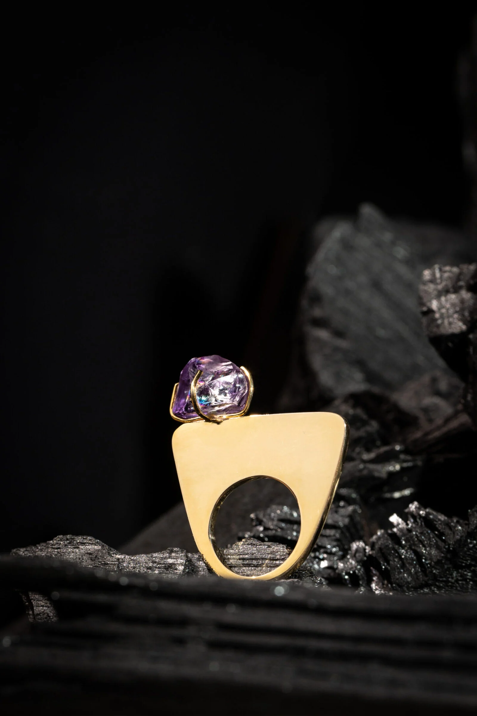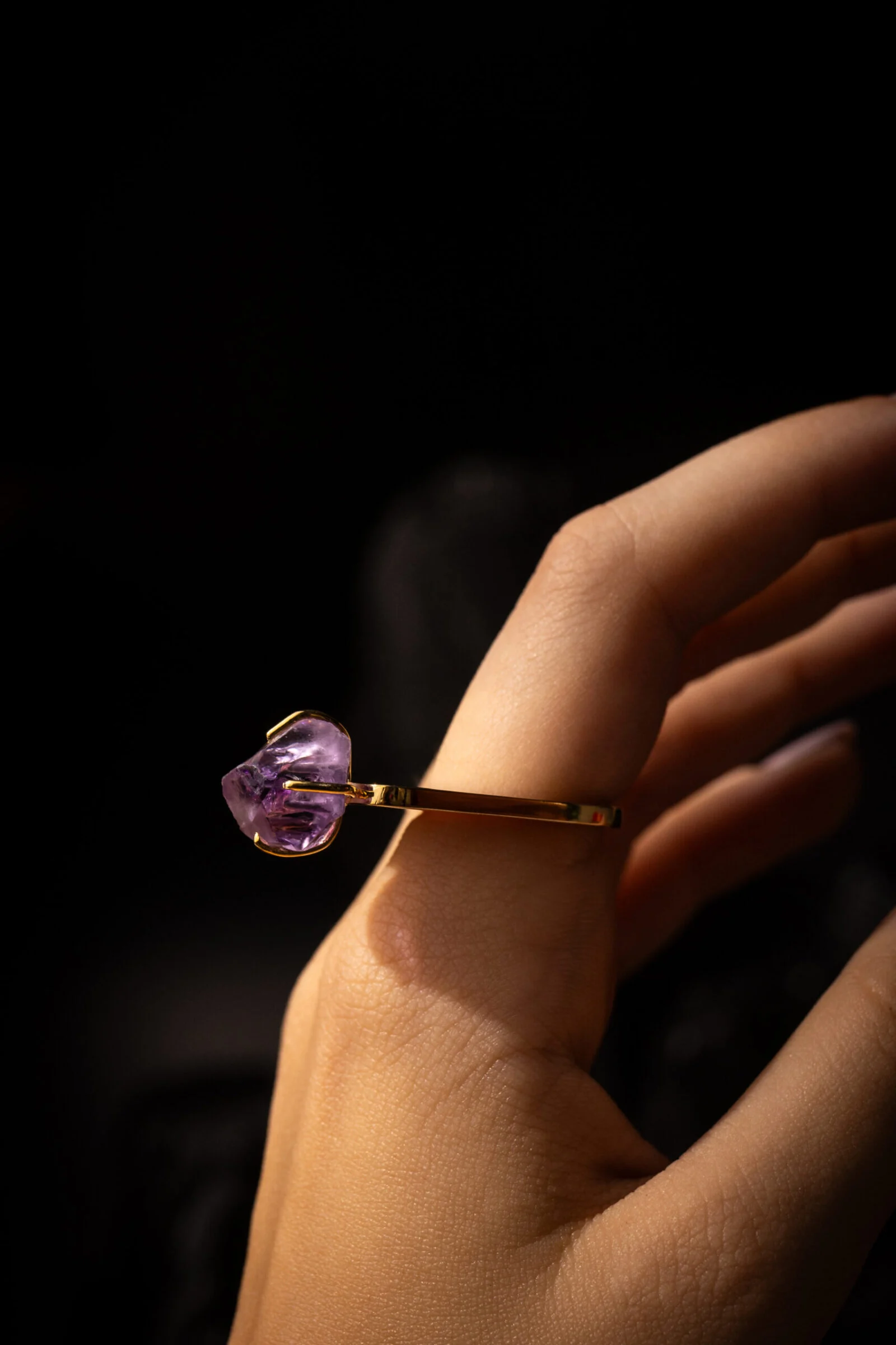O anel Essência com Ametista faz parte da coleção Encontros.
