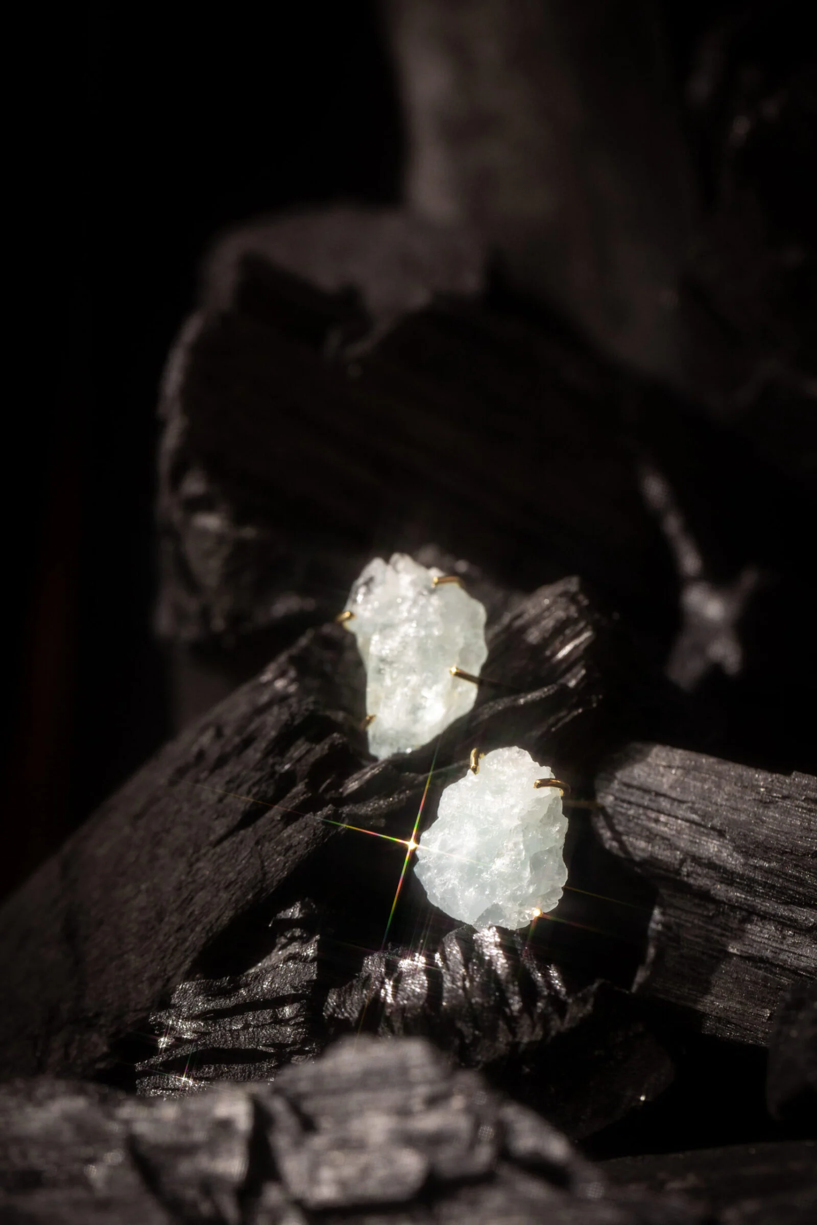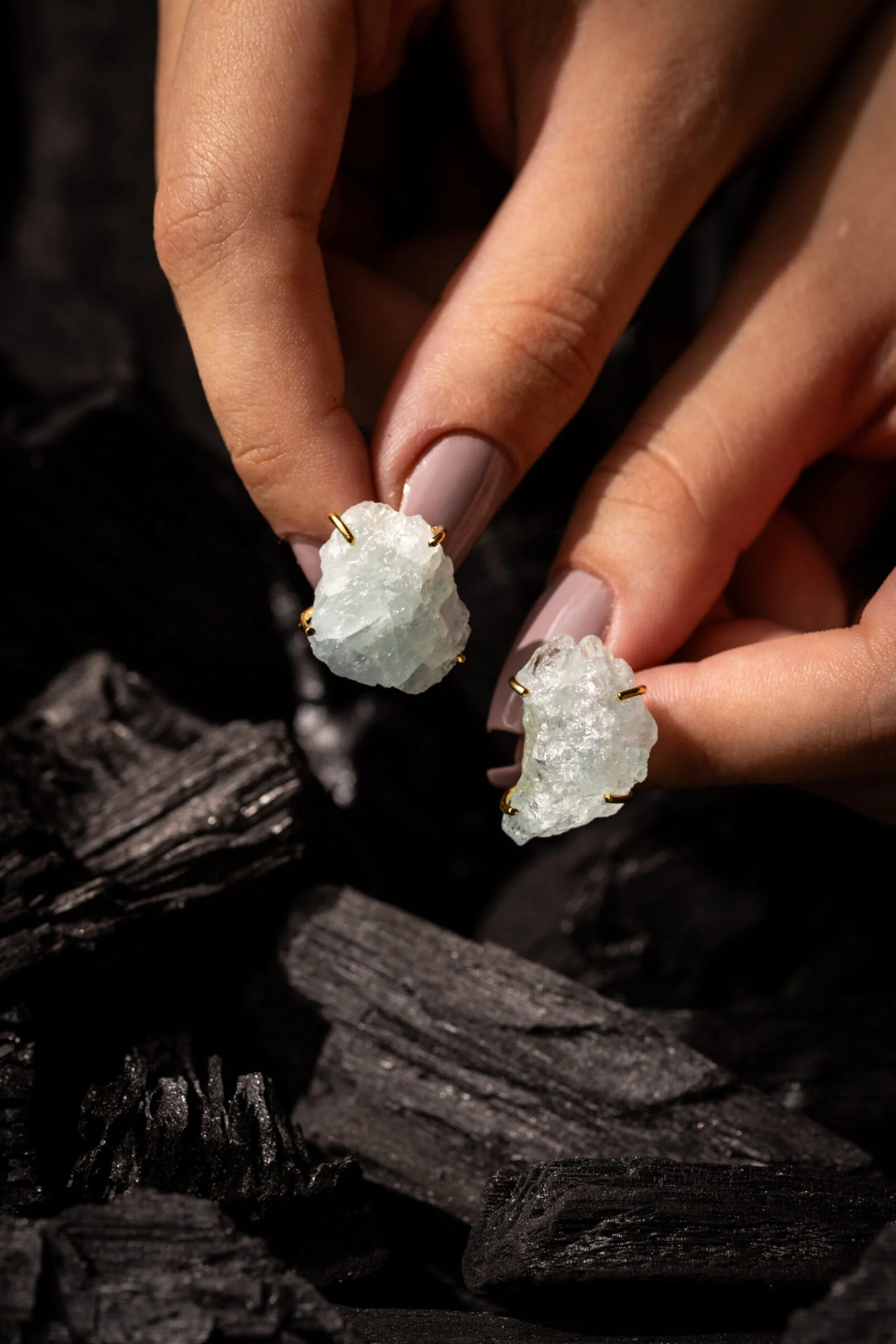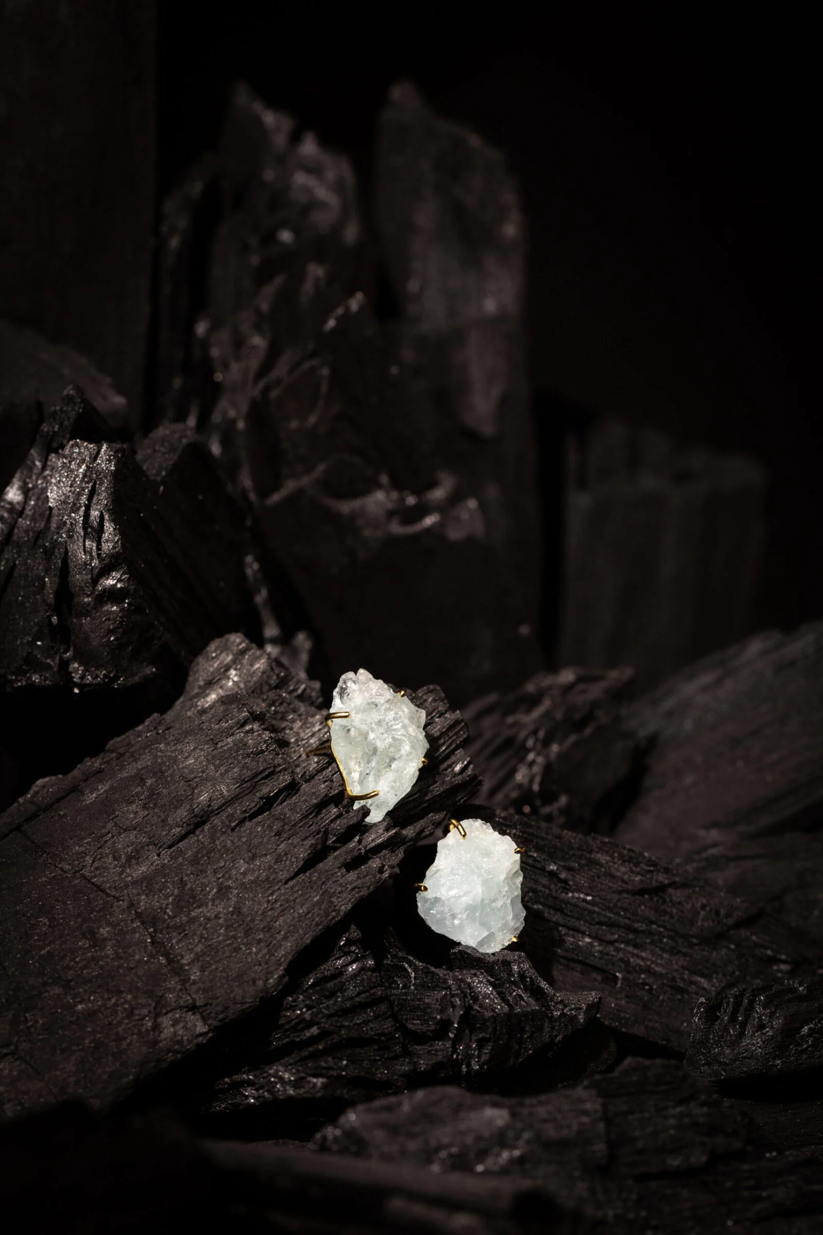 Delicados fios de prata polidos fazem combinação com gemas em sua forma bruta e revelam o encontro do bruto X elaborado, do contemporâneo X surpreendente.