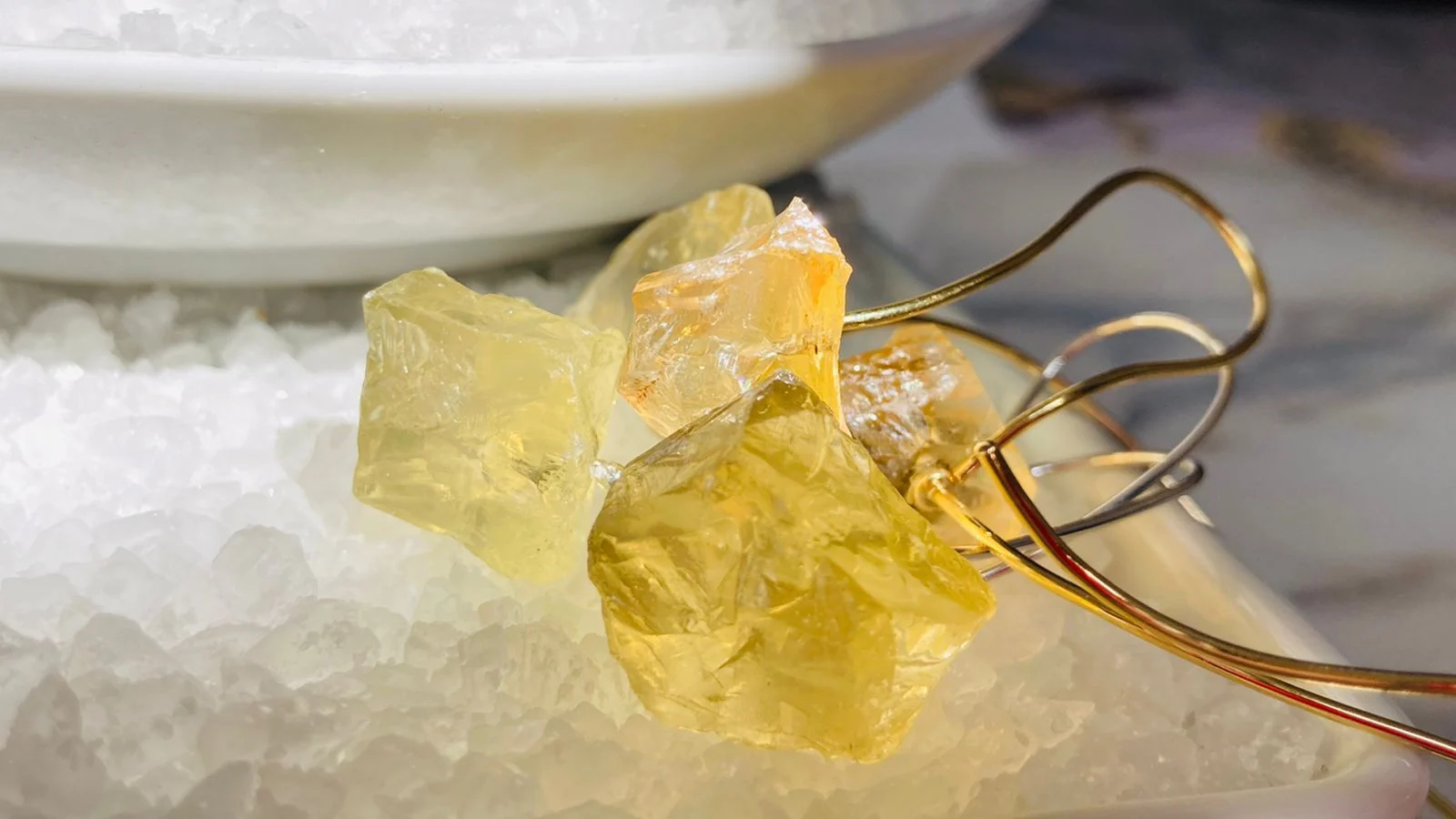 Os brincos Fluidez são feitos em prata 950, citrinos e banho de ródio branco.